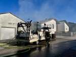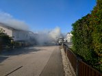 Während der Fahrt zum Einsatzort konnten wir bereits eine große Rauchsäule erkennen. Ein unter Vollbrand stehendes Wohnmobil startete sich aus unerklärlichen Gründen selbst und nahm Fahrt auf. Durch einen angrenzenden Gartenzaun kam dieses schließlich zum Stehen. Beim Eintreffen war das Feuer bereits eingedämmt und es konnte nur noch Rauch vernommen werden. Da sich in unmittelbarer Nähe ein Holzstapel und eine Hecke befand, untersuchten wir diese mittels Wärmebildkamera. Außerdem wurde das Wohnmobil ebenfalls mit der Wärmebildkamera überprüft, um keine Glutnester zu übersehen, die sich wieder erneut entflammen könnten.